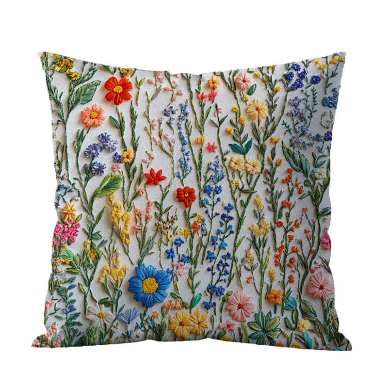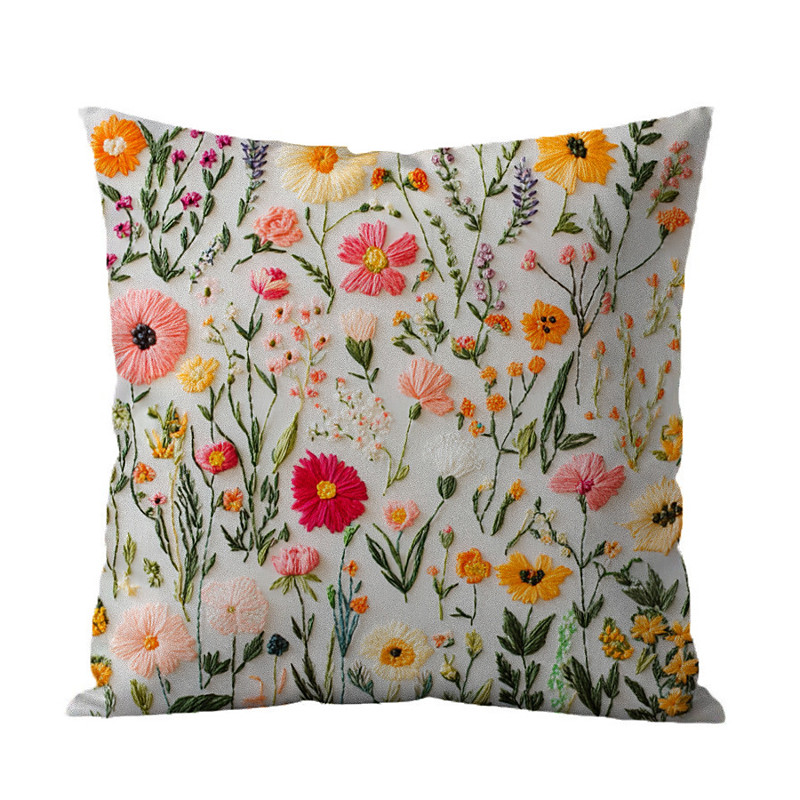 Floral Pattern Pillow Cover 2D Flat Print Soft Comfortable Cushion Case with Faux embroidery for Living Room Sofa Bedroom Home Decoration