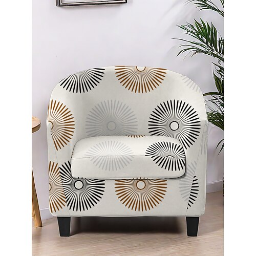 Copripoltrona club con stampa geometrica a righe e piante, fodera elastica in poliestere per proteggere la sedia da soggiorno, ufficio, casa