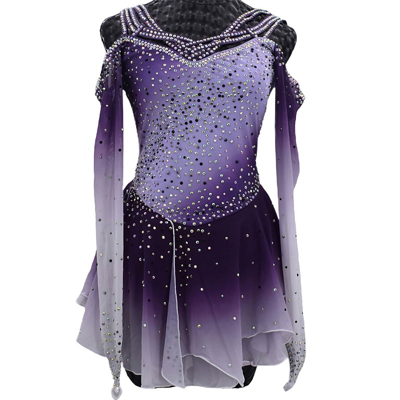 Figure Skating Dress Women's Girls' Ice Skating Dress Purple High Elasticity Training Competition Skating Wear Classic Crystal / Rhinestone Long Sleeve Ice Skating Figure Skating