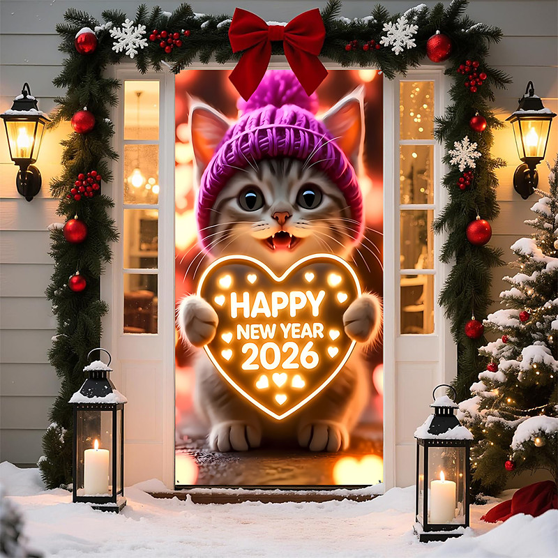 New Year Posters Door Cover Outdoor Banners Happy New Year 2026 Cute 3D Party Dorm Teens Room College Dorm Guys Man Cave Frat Bedroom Shooting Backgrounds Home Decor