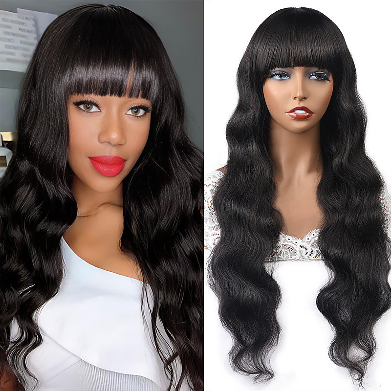 Synthetic Wig Wavy With Bangs Machine Made Wig Long Black Synthetic Hair Men's Black
