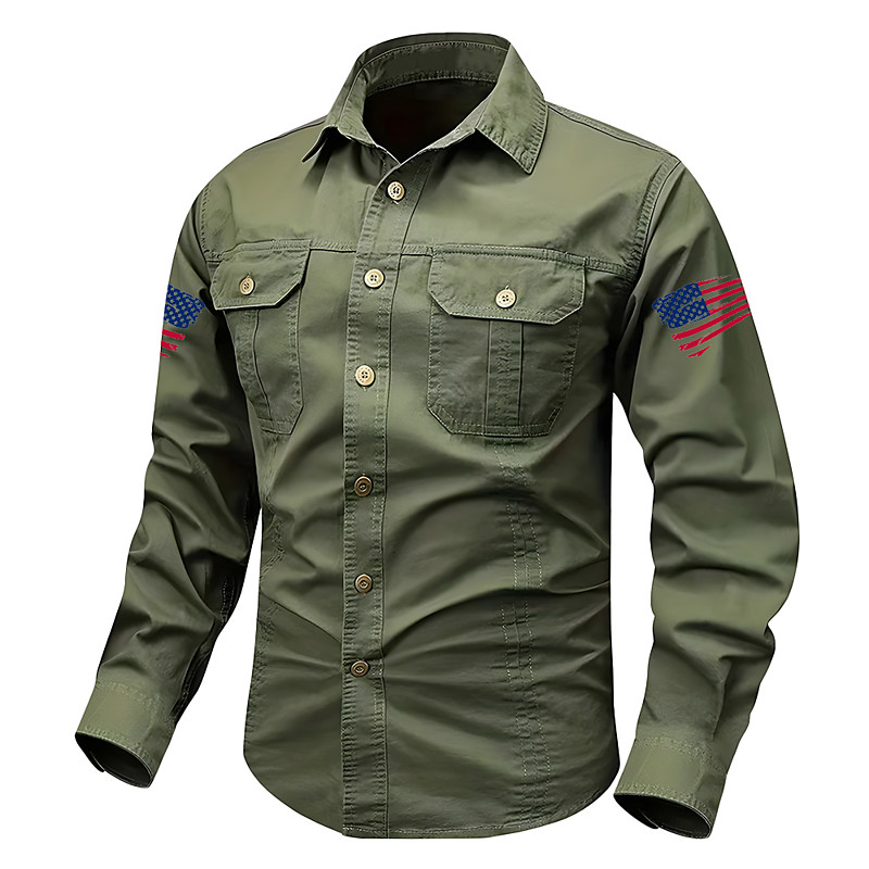 Men's American US Flag Patriotic Work Shirt Western Shirt Cargo Shirt Long Sleeve Tactical Vintage Retro Sports Outdoor WorkWear Spring Fall Turndown Front Two Pockets Button Up Shirts Army Green