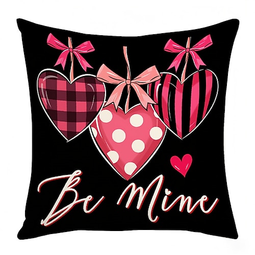 federa per cuscino con stampa di lettere bifacciale rosa e nera per San Valentino, atmosfera festiva, cuscino decorativo per soggiorno, divano, decorazioni per San Valentino