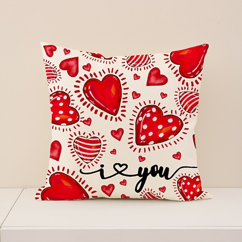 federa per cuscino con stampa a cuore per San Valentino, cuscino decorativo in lino per divano, soggiorno, perfetto per decorazioni natalizie per San Valentino, comodo cuscino da comodino e divano