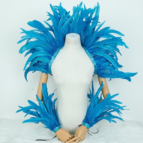 Accessori Samba per il Carnevale di Rio - Set costumi di piume rosse e gialle per Carnevale - Mantello sulle spalle e polsi per festa di Mardi Gras danza - Costume per performance al festival del