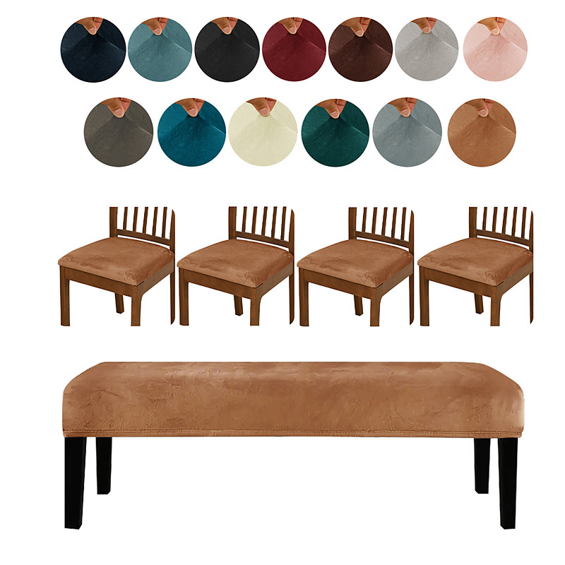 Solid Color Elastic Silver Fox Velvet Bench Covers Bench Protector Set, Non-Slip, 4 Pcs Bench Covers 1 Pc Long Bench Cover, Durable and Stylish Chair Covers