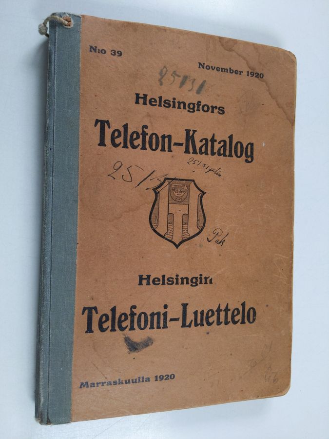Helsingfors telefonkatalog. N:o 39, utgiven i november 1920 - Helsingfors telefonkatalog. - Helsingin telefoniluettelo.