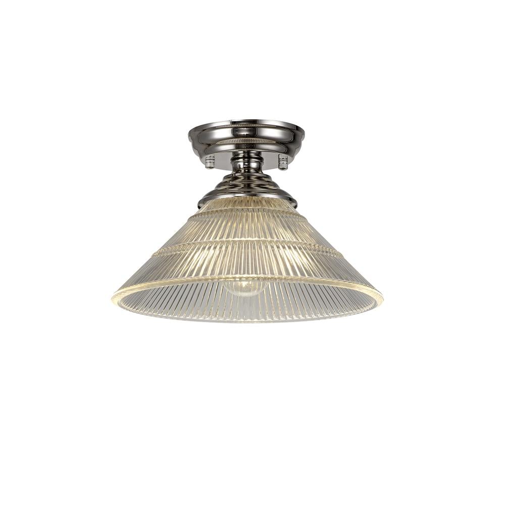 Sirius Flush Ceiling Light 1xE27 With Cone 30cm Glass Shade Polished Nickel/Clear Luxuria