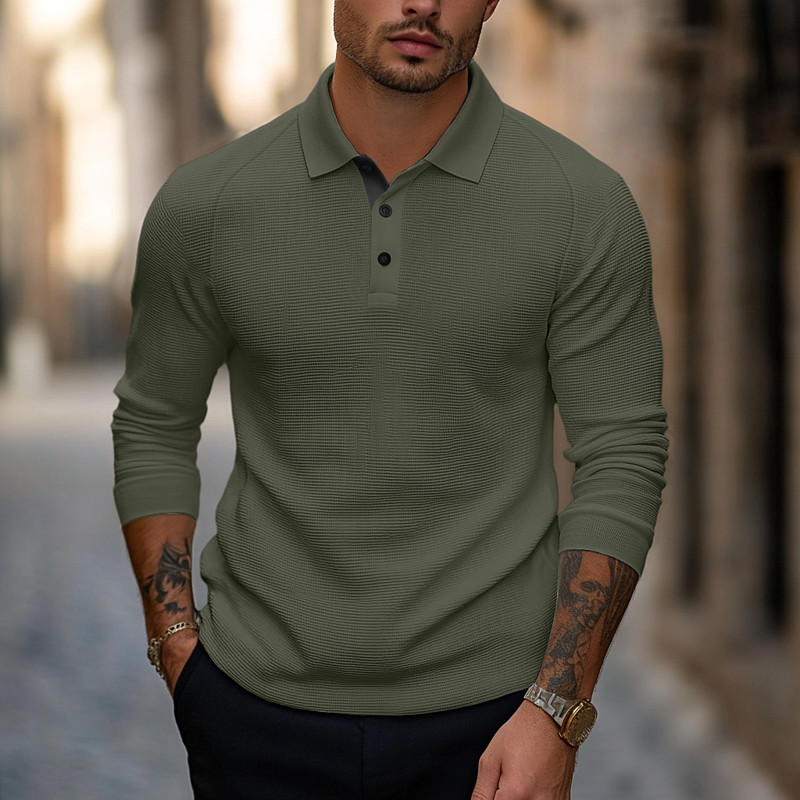 Men's Textured Golf Polos Shirts Business Casual Ribbed Polo Collar Long Sleeve Fashion Basic Solid Color Knitting Fall Winter Regular Fit Dark Grey Black Army Green Navy Blue Light Grey Textured