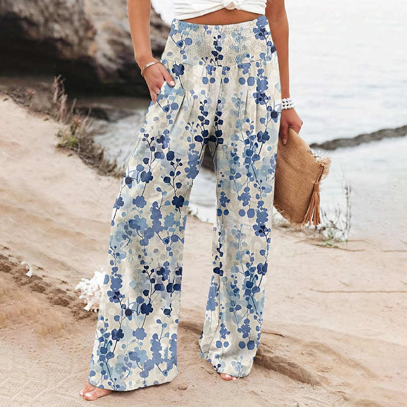 Women's Wide Leg Cotton Linen Pants Slacks Streetwear Casual Full Length Natural Floral Pocket Printing Comfy Outdoor Outdoor Vacation Street Black Grey Orange red Forest Green Depression Green Summer