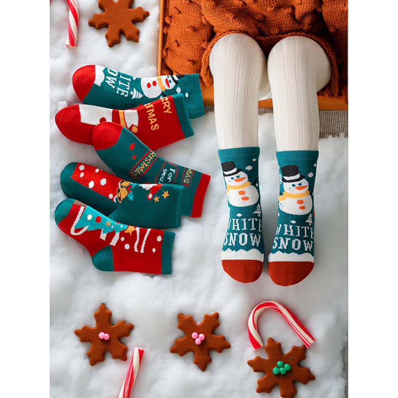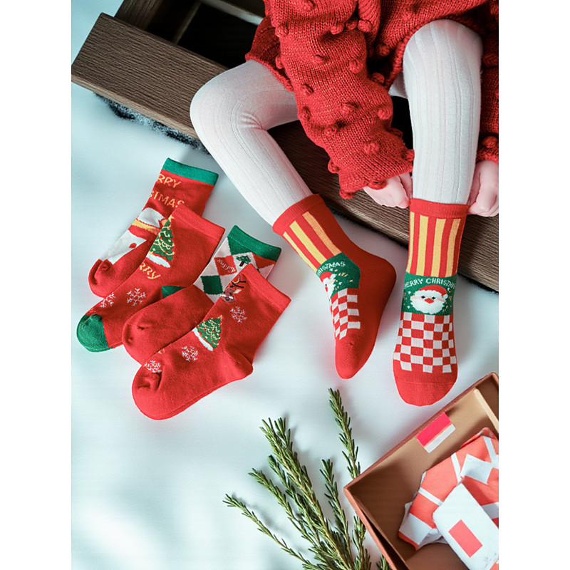 Women's Christmas Socks Set, 5 Pairs with Holiday Tree and Striped Designs, Red, Green White, Perfect for Christmas Gifts