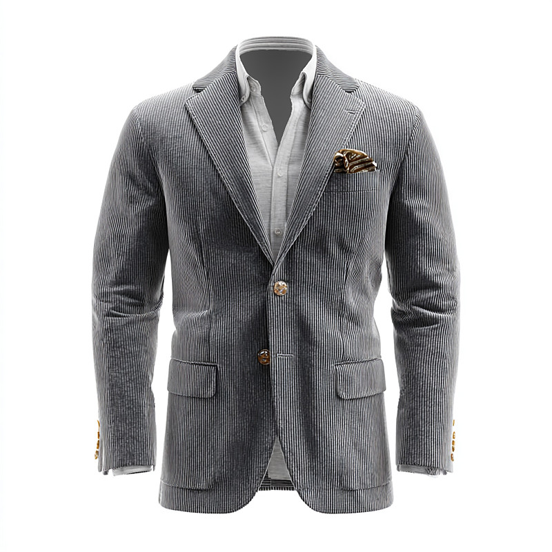Men's Corduroy Jacket Notch Collar Retro Vintage Classic Striped Solid Colored Blazer Black Green Grey Slim Fit Single Breasted Two-buttons