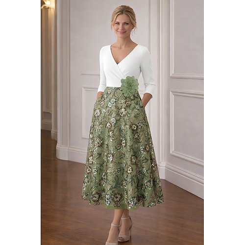 Linea ad A Lunghezza alla caviglia Lunghezza Tè Vestito da Festa Abito da Cocktail Abito da invitata a nozze Abito da cerimonia per signora Manica 3/4 Scollo a V Elegante Vintage Formale Cocktail