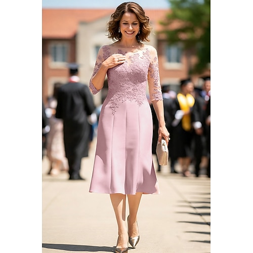 Linea ad A Lunghezza al ginocchio Vestito da Festa Abito da Cocktail Abito da invitata a nozze Abito da cerimonia per signora Manica 3/4 Scollo a Barca Vintage Trasparente Ospite di nozze Raso Pizzo