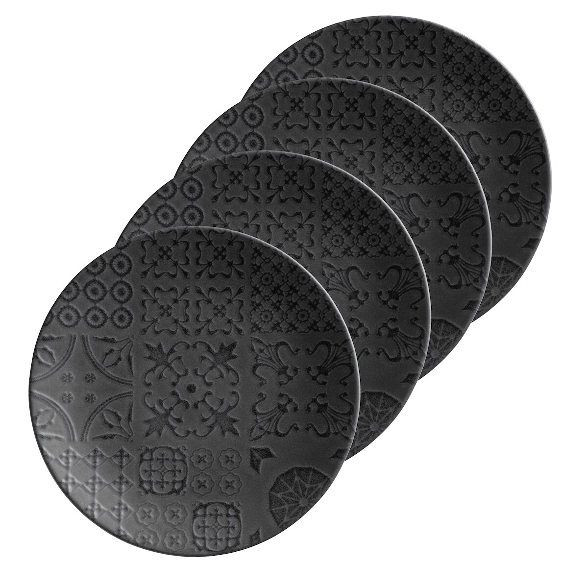 MÄSER Teller flach 27 cm 4er Set, Trad. Tiles Schwarz, 581191