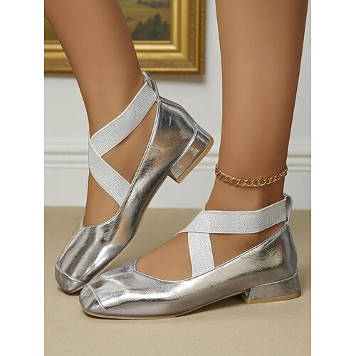ballerine dorate da donna con cinturini incrociati – scarpe con tacco basso e punta quadrata metallizzata per feste, serate ed eleganti outfit casual