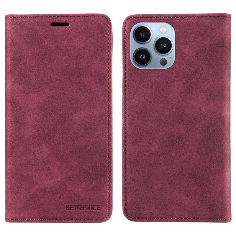 BETOPNICE 003 iPhone 12 Pro Max Plånboksfodral Konstläder - Röd