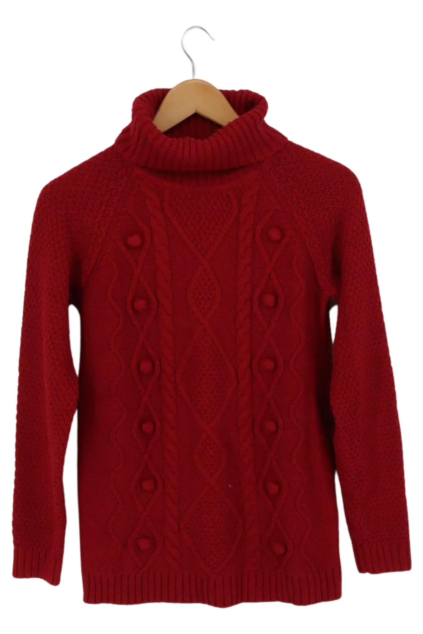 Kinder Strickpullover Gr. 158 Rot Zopfmuster Langarm