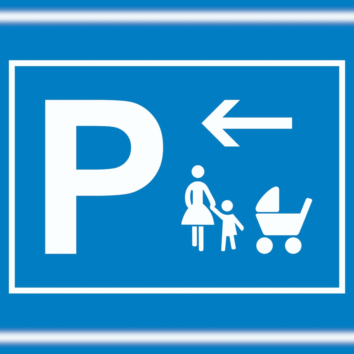 HB-Druck Mutter und Kind Parkplatz Schild mit Richtungspfeil links waagerecht A4 (210x297mm)