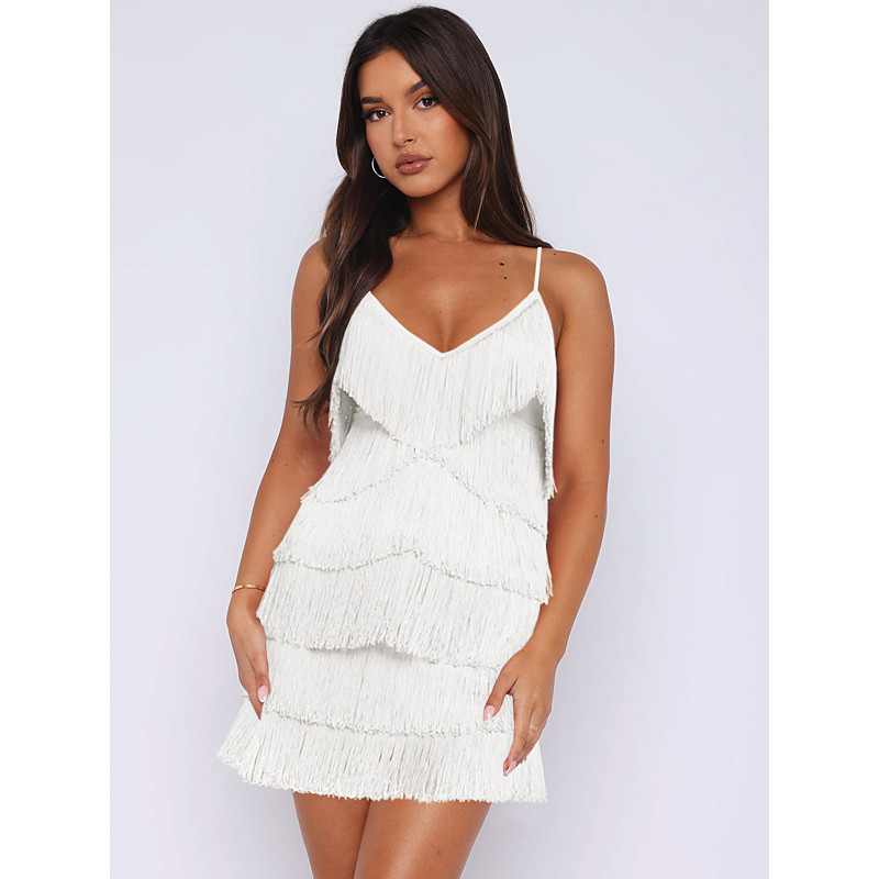 Latin Dance Dress Tassel Women's Party Daily Wear Sleeveless Milk Fiber