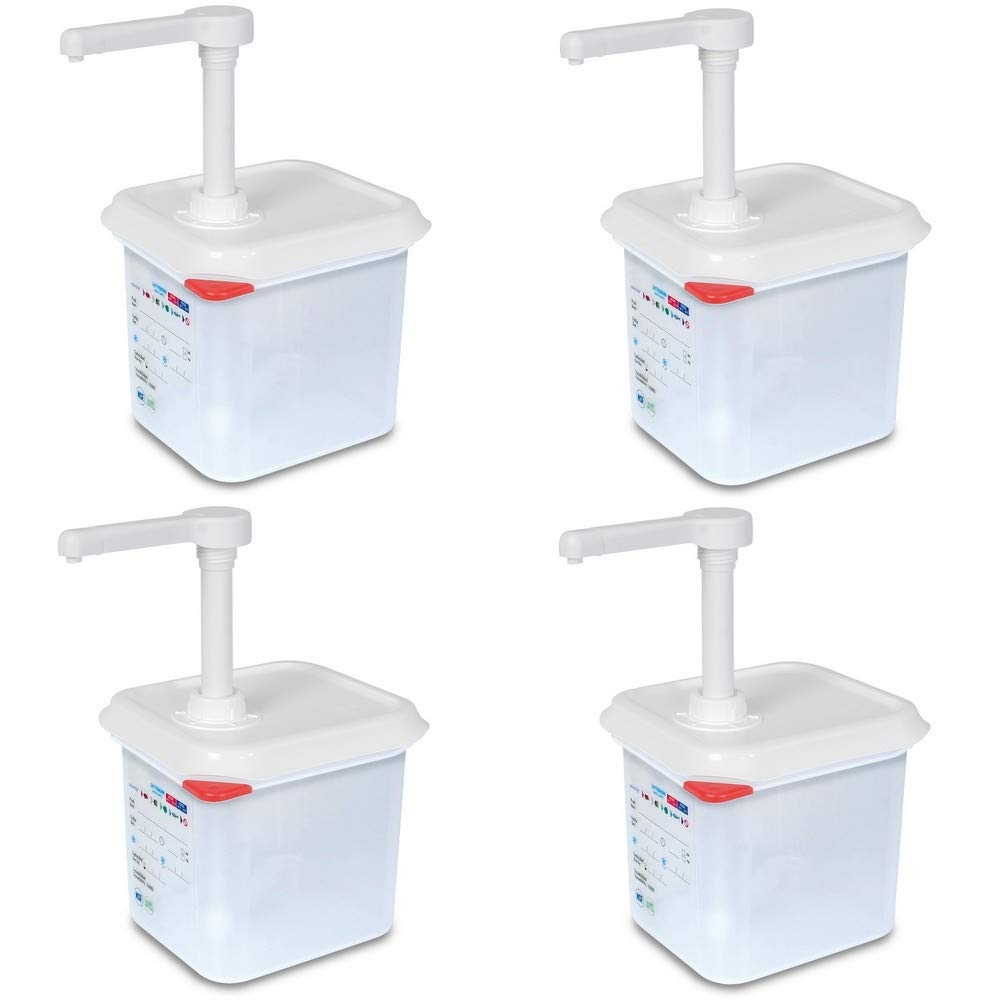BRB 4x Pumpspender für Saucen, 2,6 Liter, pro Hub 30 ml, mit dichtschließendem Deckel, PP, LxBxH 176 x 162 x 190 mm