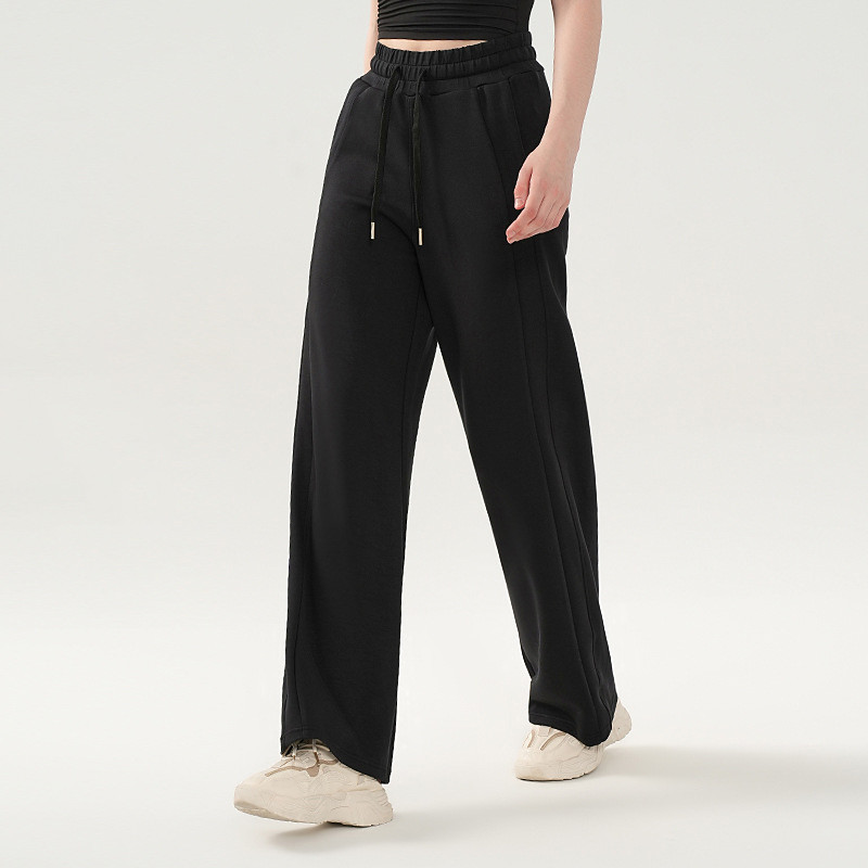 Women's Yoga Pants Staright Leg Pants with Pockets Gym Athletic Sports Bottoms Solid Color Black White Pink Cotton Fall Sports Activewear Loose Fit