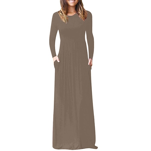 Per donna Abito Lungo Maxi Abito Abito nero Vestito Casual Moda Moderno All'aperto Feste Ferie Vestibilità regolare Semplice Manica Lunga Girocollo Nero Vino Verde militare Blu marino Primavera