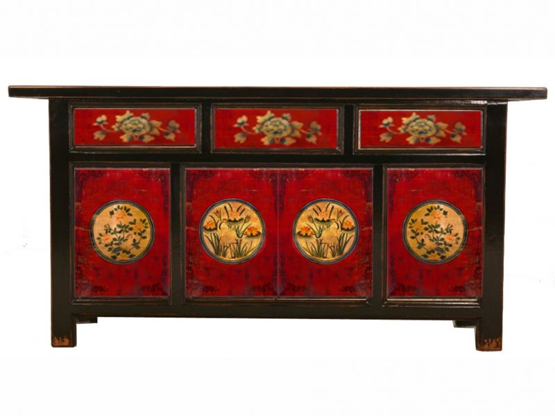 OPIUM OUTLET Möbel Kommode Schrank Sideboard Hochzeitsschrank "RedMagic" 34372-7 rot-schwarz asiatisch chinesisch orientalisch