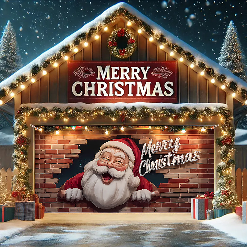 Christmas Garage Door Cover Large Hanging Backdrop Christmas Shop Gift Cute 3D Party Outdoor Holiday Shooting Backgrounds Yard Home Decor