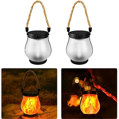 Solar-Flammenlaternen, flackernde Hängeleuchten für den Außenbereich, wasserdicht (IP65), 2 Modi, dualer USB-/Solarbetrieb, automatische Ein-/Ausschaltfunktion für Garten, Hof, Terrasse, Veranda,