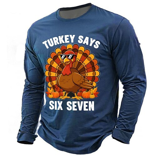 giorno del Ringraziamento Per uomo Turchia Gergo divertente Maglietta Manica Lunga maglietta Stampa 3D Girocollo Camicia Quotidiano Designer Streetwear Casuale Blu Nero Rosso Estate Primavera Autunno