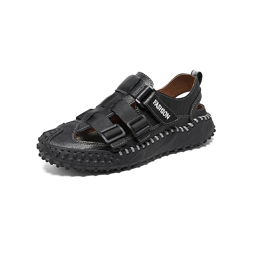 sandali da pescatore chiusi in similpelle marrone da uomo con cinturino con fibbia – scarpe estive casual traspiranti per l'uso quotidiano e all'aperto
