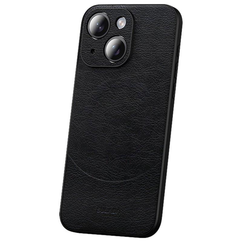 SULADA Mobilskal till iPhone 15 Plus PU Läder Coated PC+TPU Svart