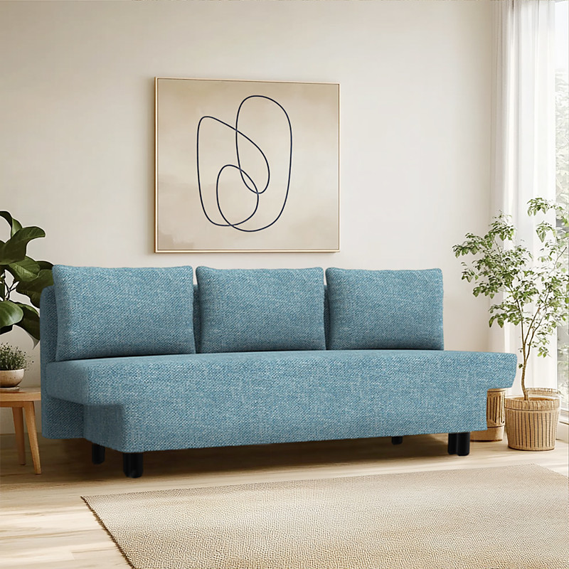 Dmora Festes Sofa Jessica, Modulares 3-Sitzer-Sofa mit linker Halbinsel, 100% Made in Italy, Modernes Sofa aus Stoff, Cm 300x170h70, Blau