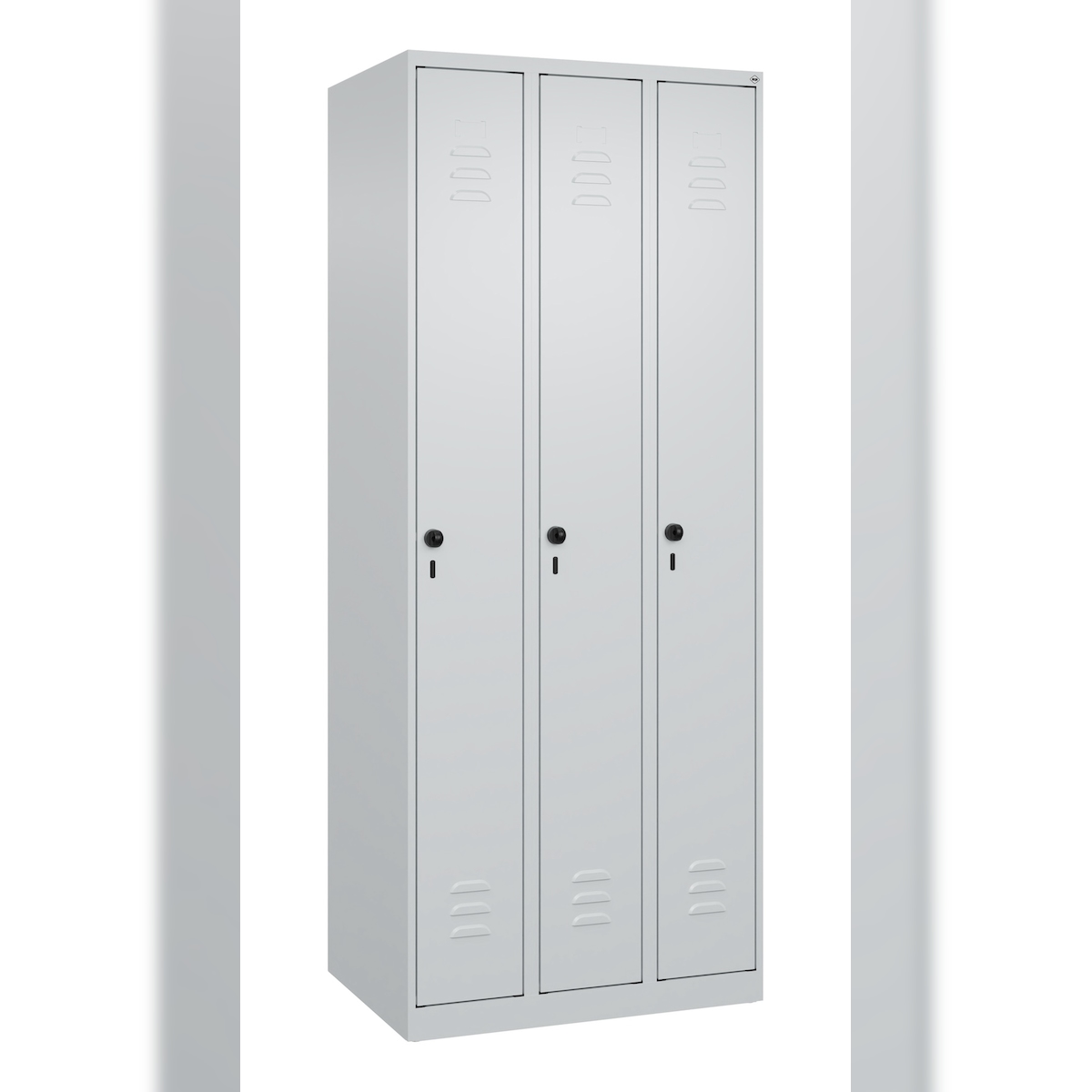 C+P Spind Classic PLUS, 3 Abteile, HxBxT 185x75x50cm, Sicherheitsdrehriegel, Hellgrau/Hellgrau von PROREGAL