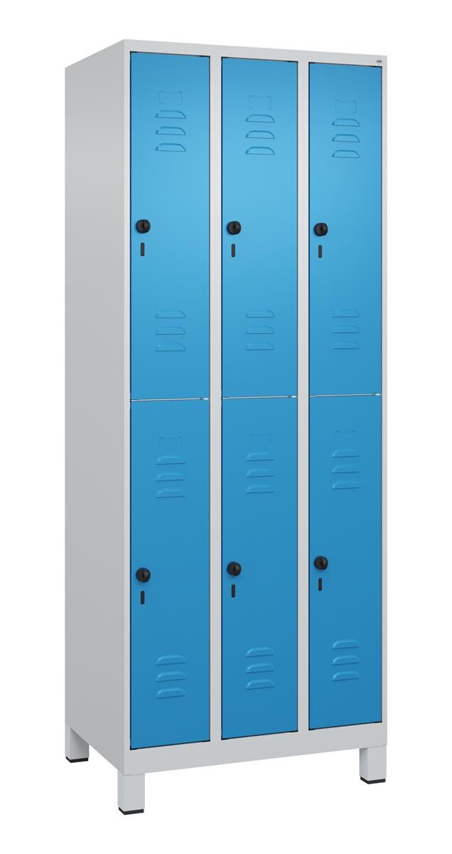C+P Doppelstock-Spind Classic PLUS, Füße, 3 Abteile, 1950x750x500mm, 7035/5012