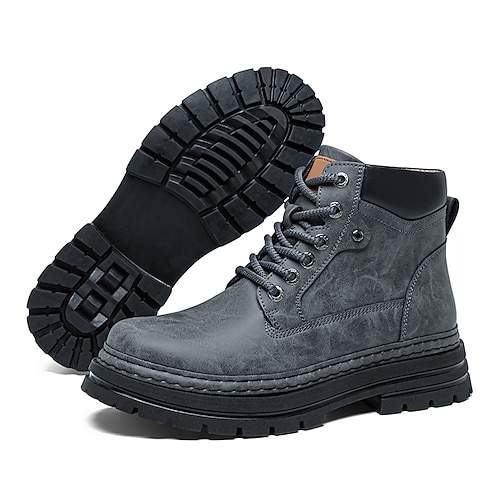 stivali stringati da uomo in similpelle marrone con suola spessa: calzature eleganti e pratiche per uscite informali, lavoro e uso quotidiano
