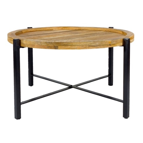 Amagohome Couchtisch ø75cm Beistelltisch Wohnzimmer Tisch rund Sioux Metall Gestell : tabacco - schwarz