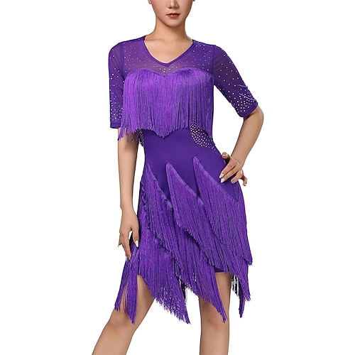Danza Latina Vestito Nappa Giunzione Paillette Per donna Performance Allenamento Festa a Tema Manica Corta 100% Cotone