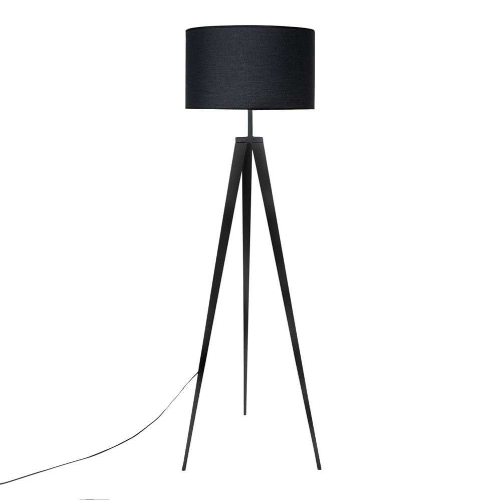 Lampada da terra in metallo con finitura nera sabbiata.