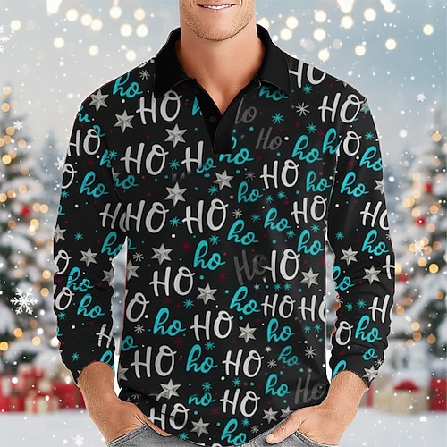 Per uomo Testo Polo con zip Manica Lunga Magliette polo Bavero Casual All'aperto Abbigliamento quotidiano Stampa 3D Primavera Autunno Inverno Blu Rosso Verde
