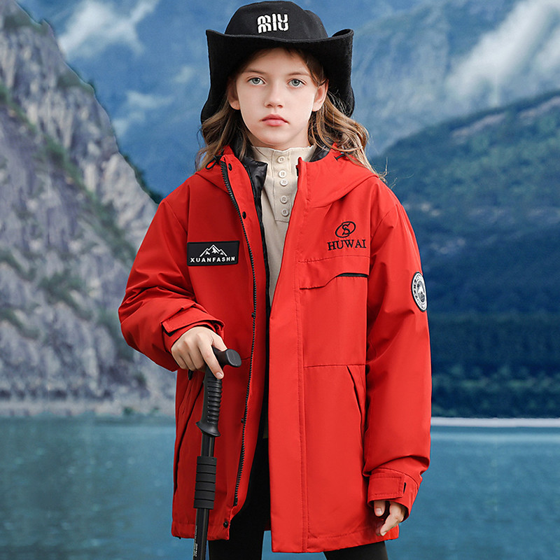 Kids Girls' Down Jacket Hiking Jacket 3 in 1 Jacket Puffer Jacket Letter Sports Pocket Waterproof Keep Warm Windproof Outdoor Coat Outerwear 6-12 Y Winter Black Red Green