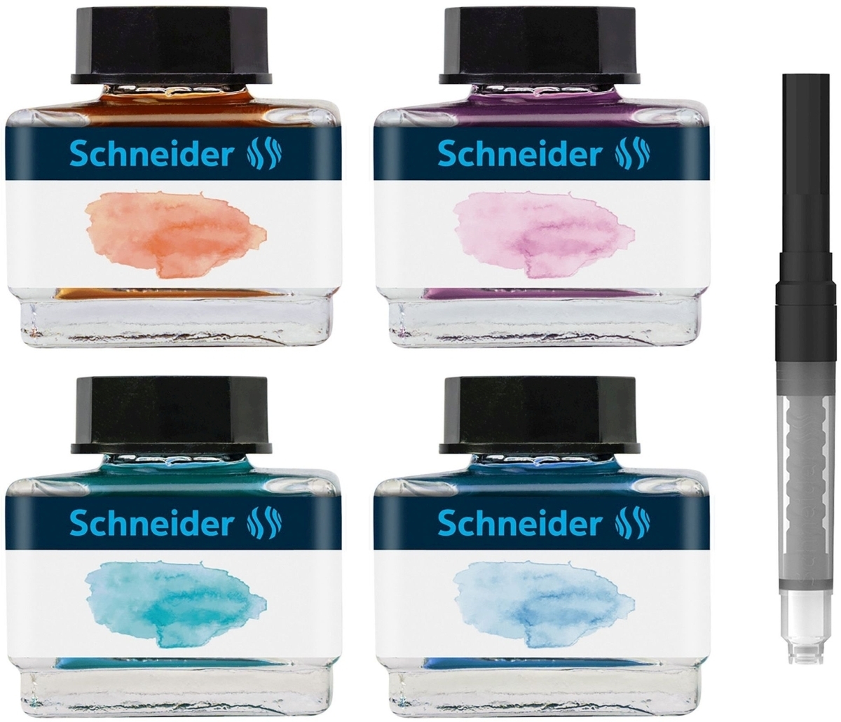 Schneider Schreibgeräteset Tintenglas 15 ml / Tintenkonverter VE=20x5 Stück (5 Farben)