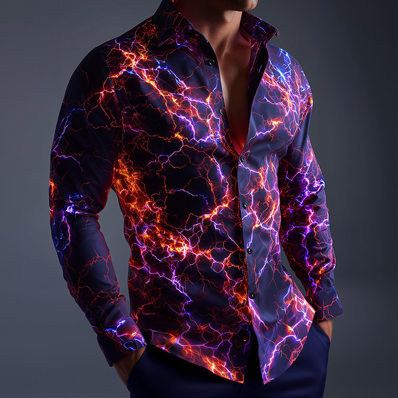 Men's Optical Illusion Lightning Flame Shirt Button Up Shirt Casual Dress Shirt Long Sleeve Fashion Casual Streetwear Vacation Spring Fall Turndown 3D Print Collared Shirts Purple Dark Purple