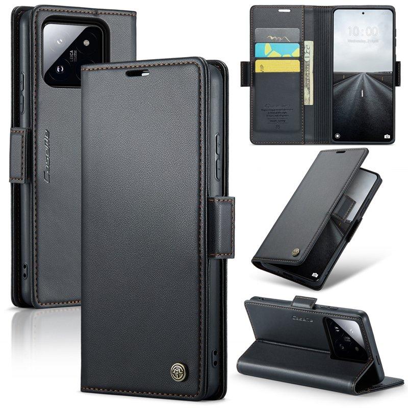 CASEME Xiaomi 14 Pro Plånboksfodral Konstläder RFID-Skydd Svart
