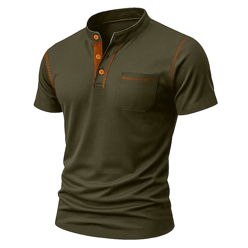 Per uomo Maglia Henley Maglietta Manica Corta Tinta unica Semplice Casual Tasca Bottoni Cuciture a contrasto Henley All'aperto Casuale Quotidiano Estate Primavera Autunno Nero Bianco Blu chiaro