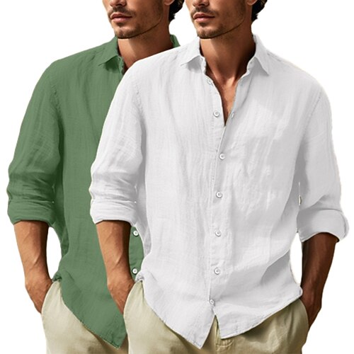 Per uomo Camicia Camicia di lino Camicia Estiva Abbigliamento da spiaggia Camicia con Bottoni Semplice Vacanza Crociera Bianco rosa Bianco kaki Nero verde scuro Grigiocachi Manica Lunga Bavero