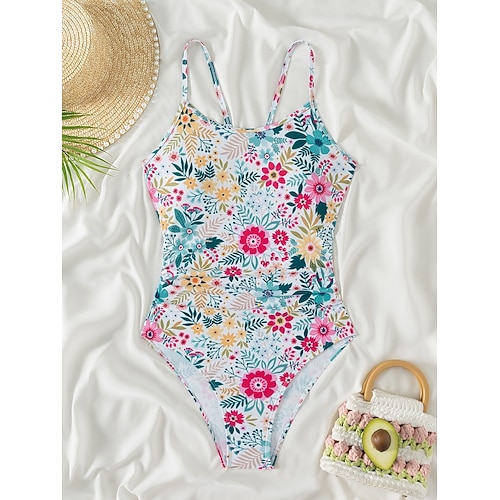 Costume da bagno da donna intero snellente monokini boho schiena scoperta controllo della pancia alta vita snellente per vacanze in spiaggia collo a U floreale senza maniche