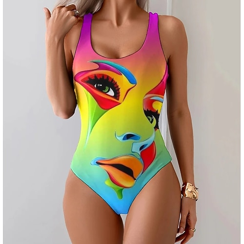 Costume da bagno intero donna snellente monokini slip controllo della pancia vita alta snellente schiena scoperta moda vintage ombre grafica a U senza maniche