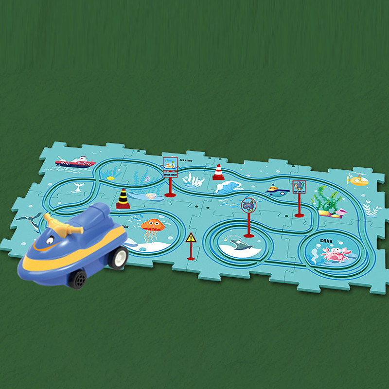 Tiktok Car Map Jigsaw Diy Track Set Electric Car Toy Mini Road Sign Puzzle Toy Christmas Gift